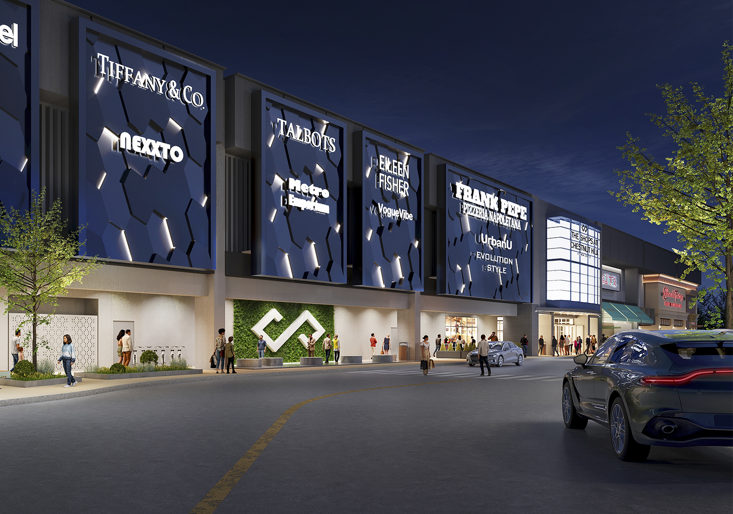 As a luxury shopping environment, The Shops at Chestnut Hill takes pride in creating a simple yet elegant backdrop for their tenants and customers. The space is flooded with natural light during the day and a soft evening glow at night. This remodel capitalizes on this concept with the addition of white floating ceiling clouds to conceal the exposed space frame, upgraded LED lights, and the introduction of custom art sculptures which will take this project one step further toward a museum quality look.